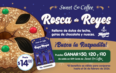 Con la opción PEDIDOS, ahora puedes ordenar tus postres y bebidas favoritas, y podrás recogerlas en nuestros locales o pedirlas para tu domicilio. Recuerda que con tus consumos en nuestra App ganas estrellas y saldo Sweet&Coffee®.