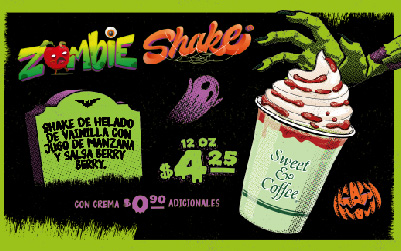 Prueba nuestro espeluznante shake de vainilla con jugo de manzana y la deliciosa salsa berry berry
